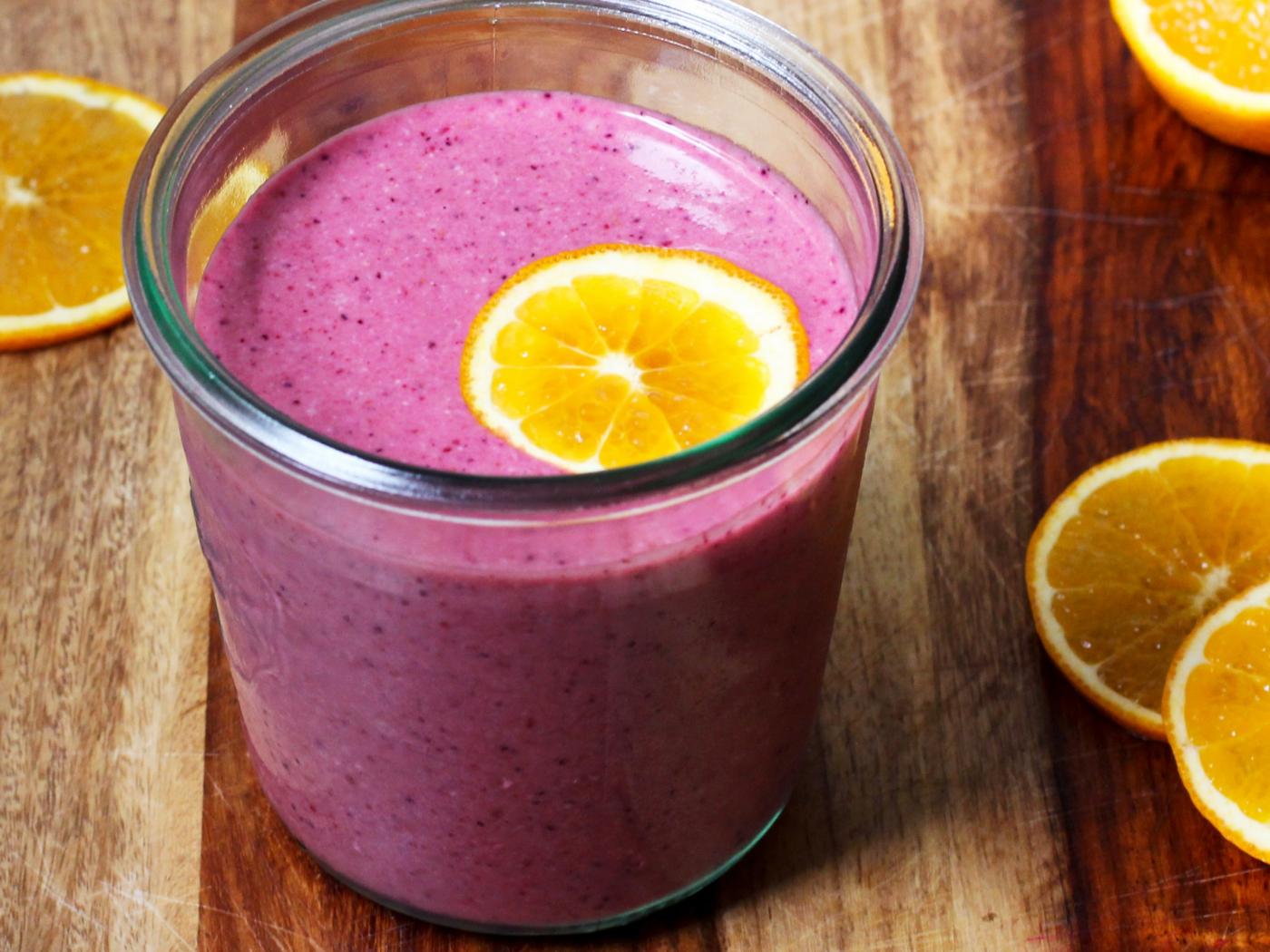 Wallpaper Fresh berry smoothies with slices of orange