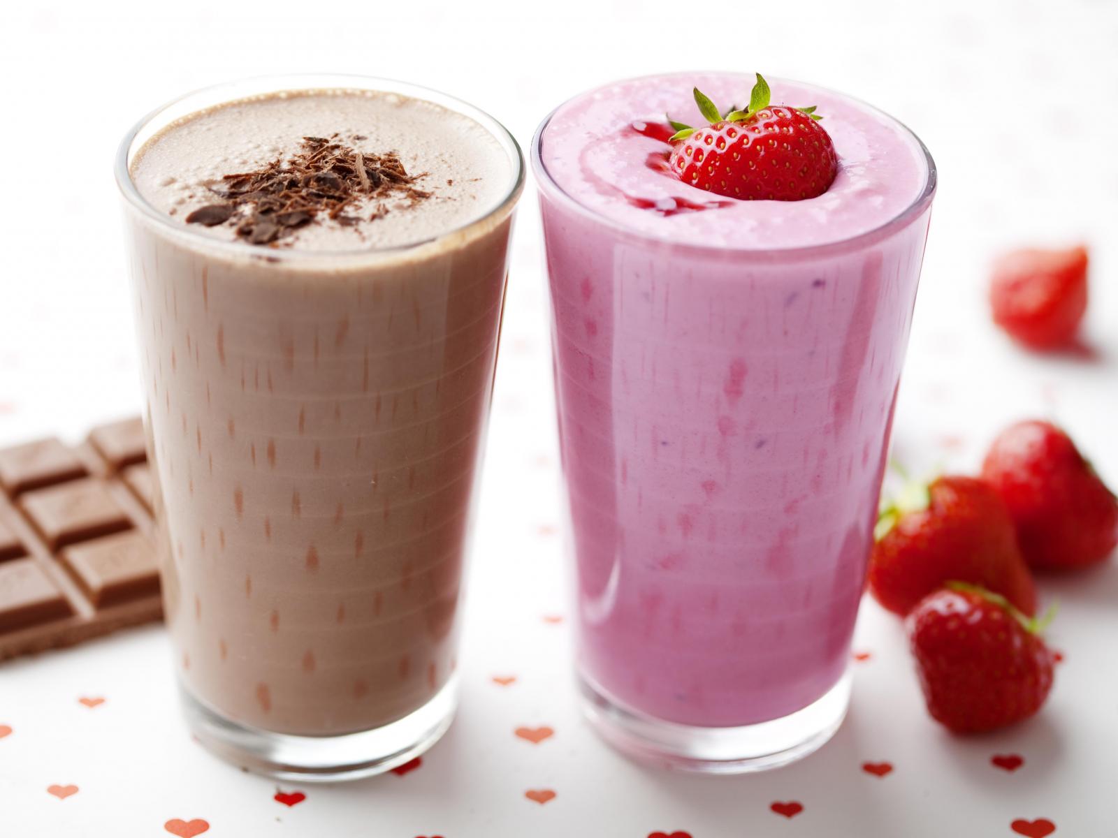 Wallpaper Chocolate and strawberry smoothies in glasses on the table