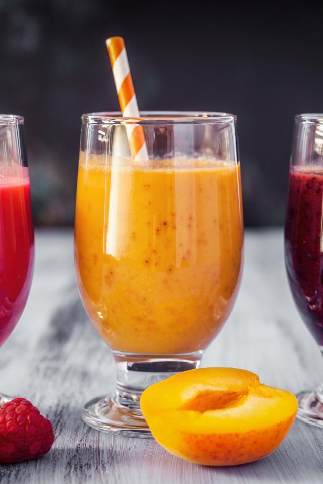 Wallpaper Three glasses of fresh berry smoothie on the table