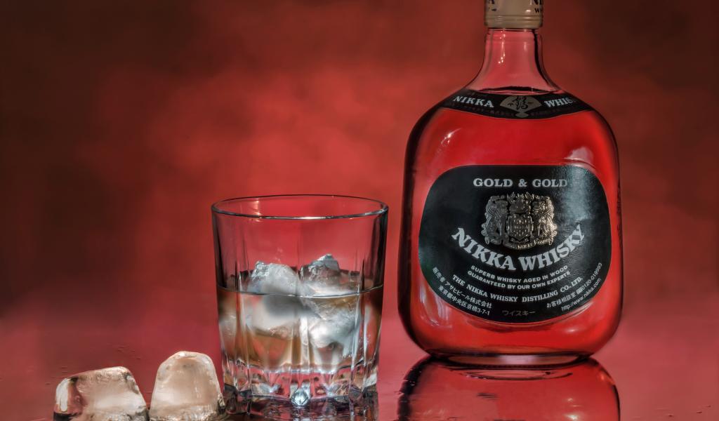 Wallpaper Bottle Nikka Whiskey on the table with a glass of ice