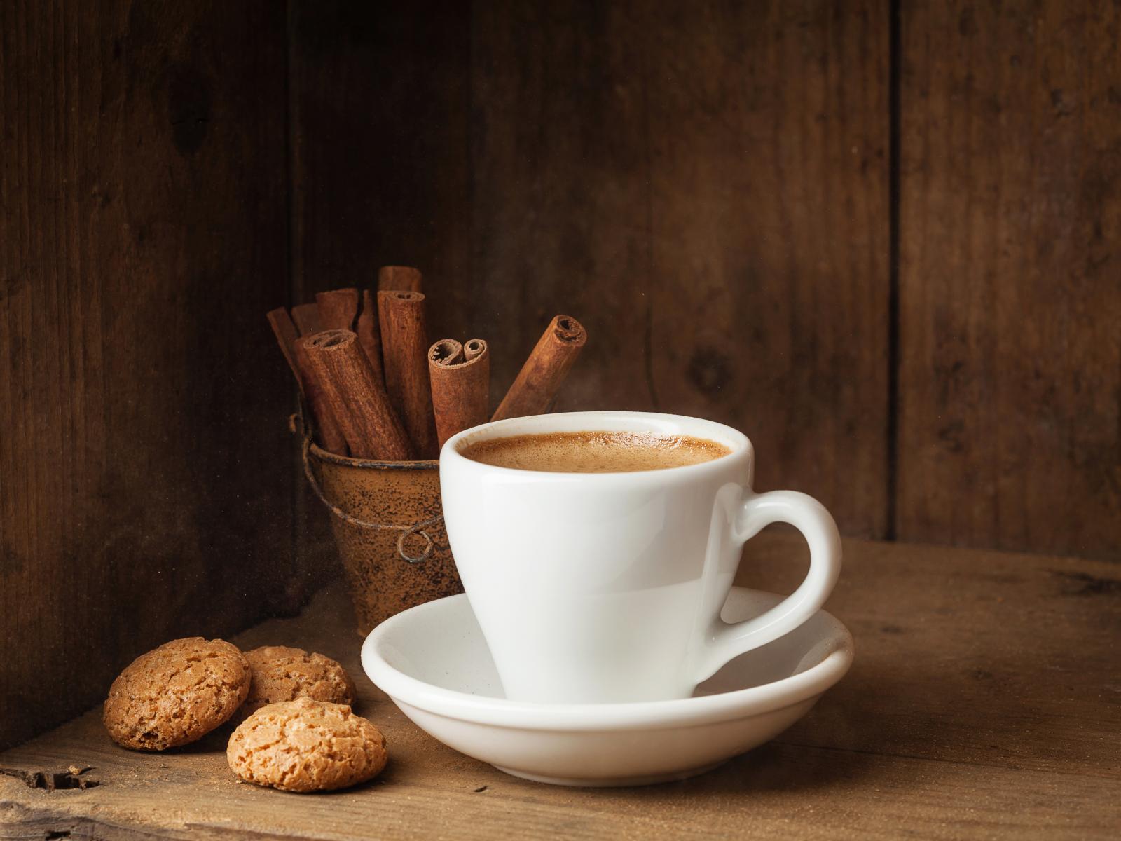 Wallpaper A cup of coffee with cinnamon and oatmeal cookies