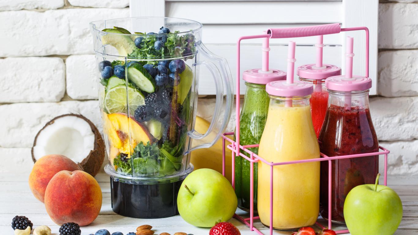 Wallpaper Delicious drink smoothies in bottles on the table