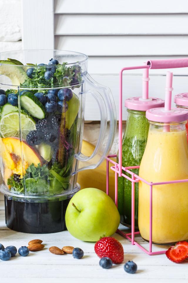 Wallpaper Delicious drink smoothies in bottles on the table