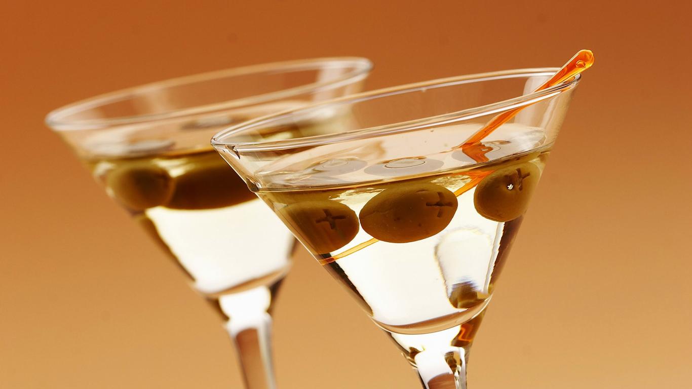 Wallpaper Drink martini in glasses with olives on a creamy background