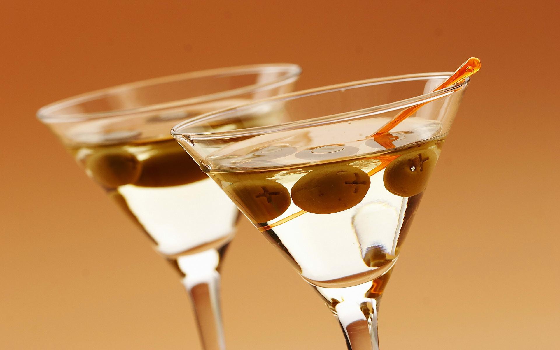 Wallpaper Drink martini in glasses with olives on a creamy background