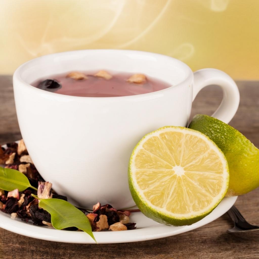 Wallpaper White cup of tea with slices of lime on a white saucer