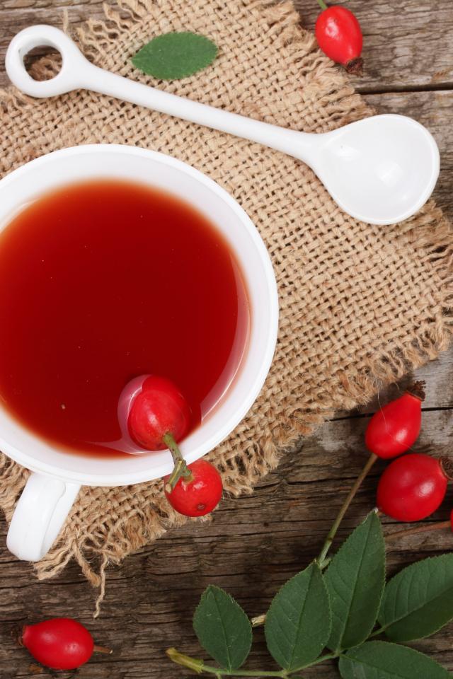 Wallpaper White tea cup with briar berries on the table