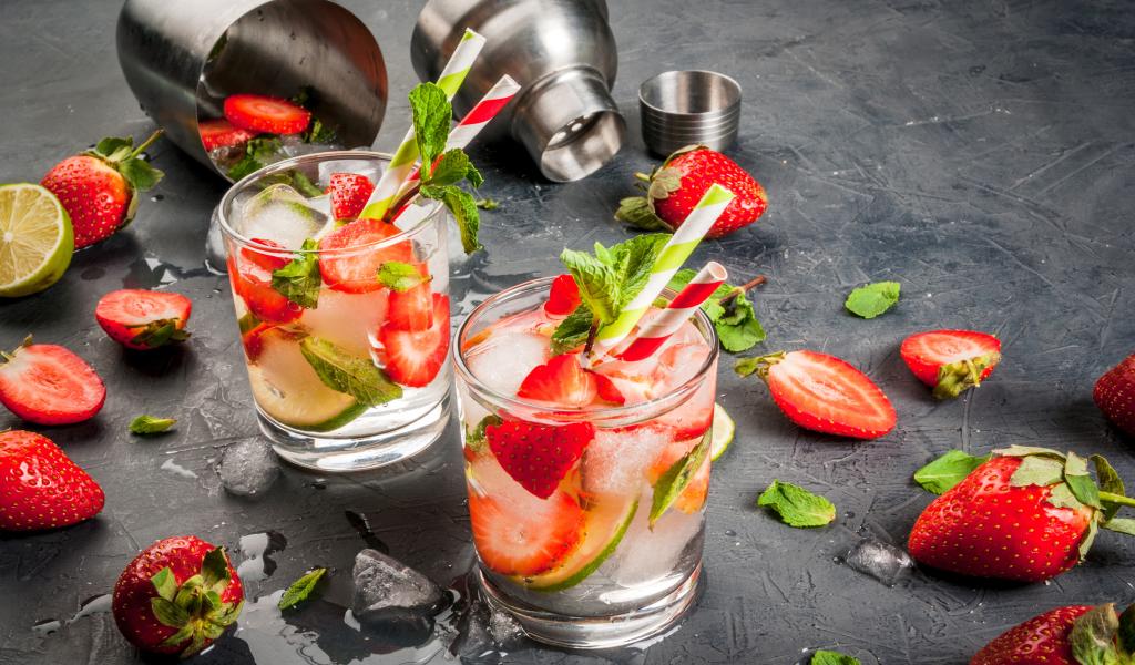 Wallpaper Summer drink mojito with strawberries, lime and mint leaves