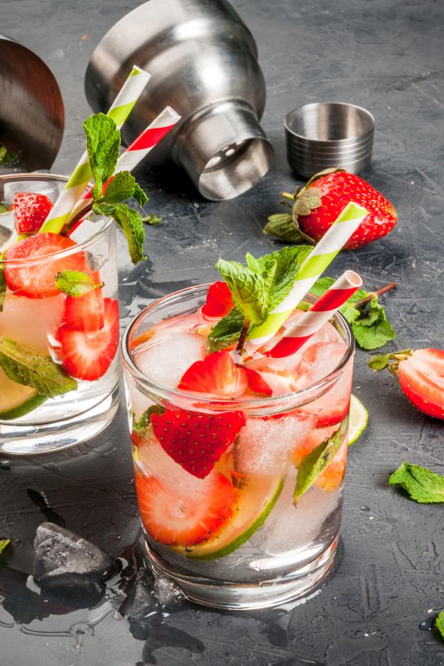 Wallpaper Summer drink mojito with strawberries, lime and mint leaves