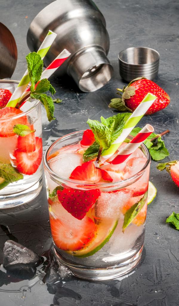 Wallpaper Summer drink mojito with strawberries, lime and mint leaves