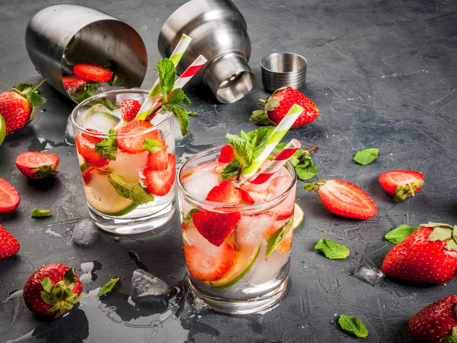 Wallpaper Summer drink mojito with strawberries, lime and mint leaves