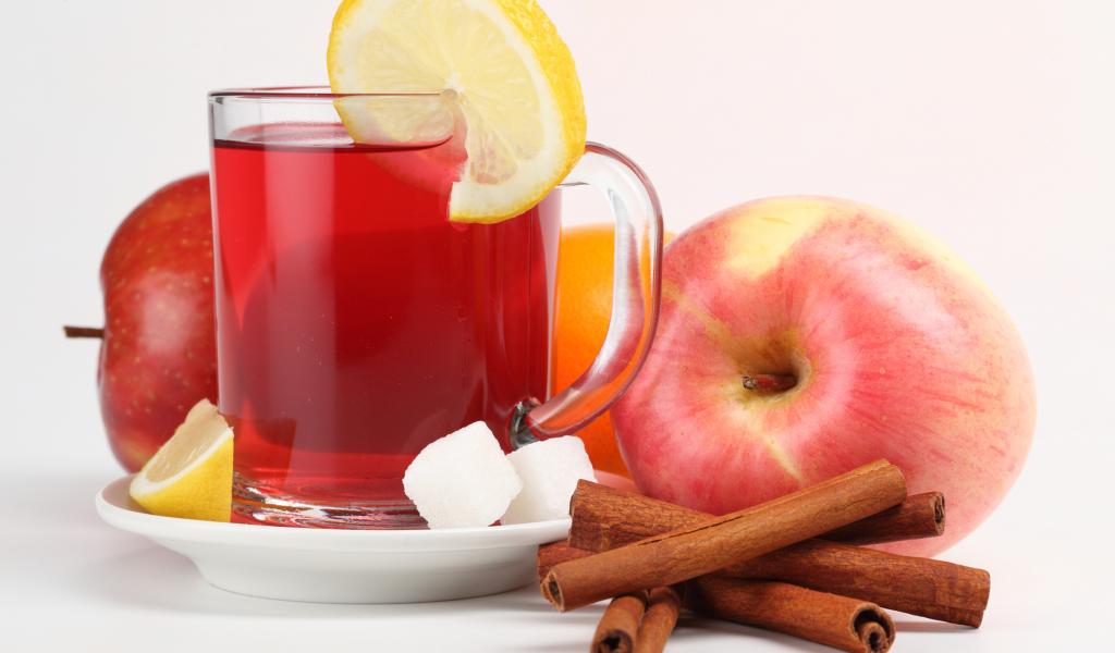 Wallpaper Tea with lemon, apples and cinnamon on a white background