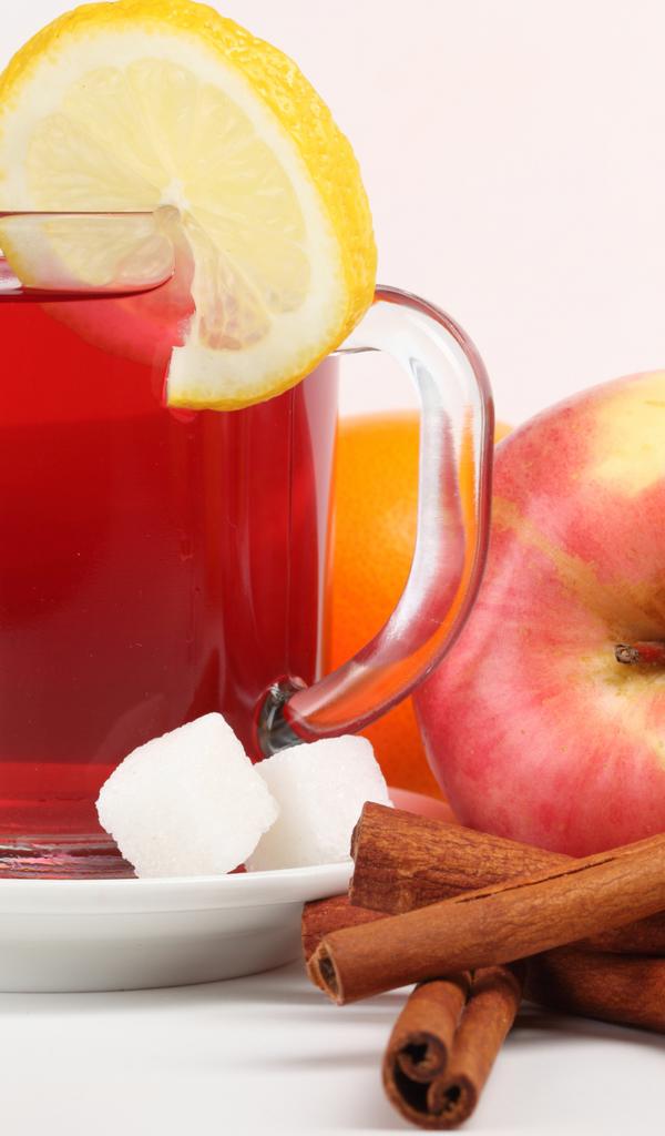 Wallpaper Tea with lemon, apples and cinnamon on a white background