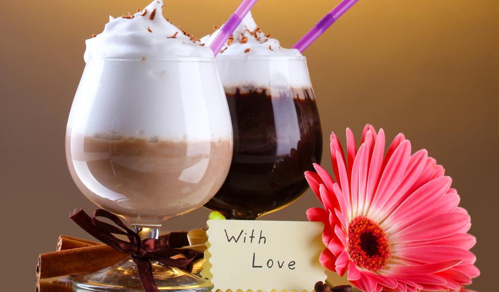 Wallpaper Two glasses with dessert, cinnamon and gerbera flower