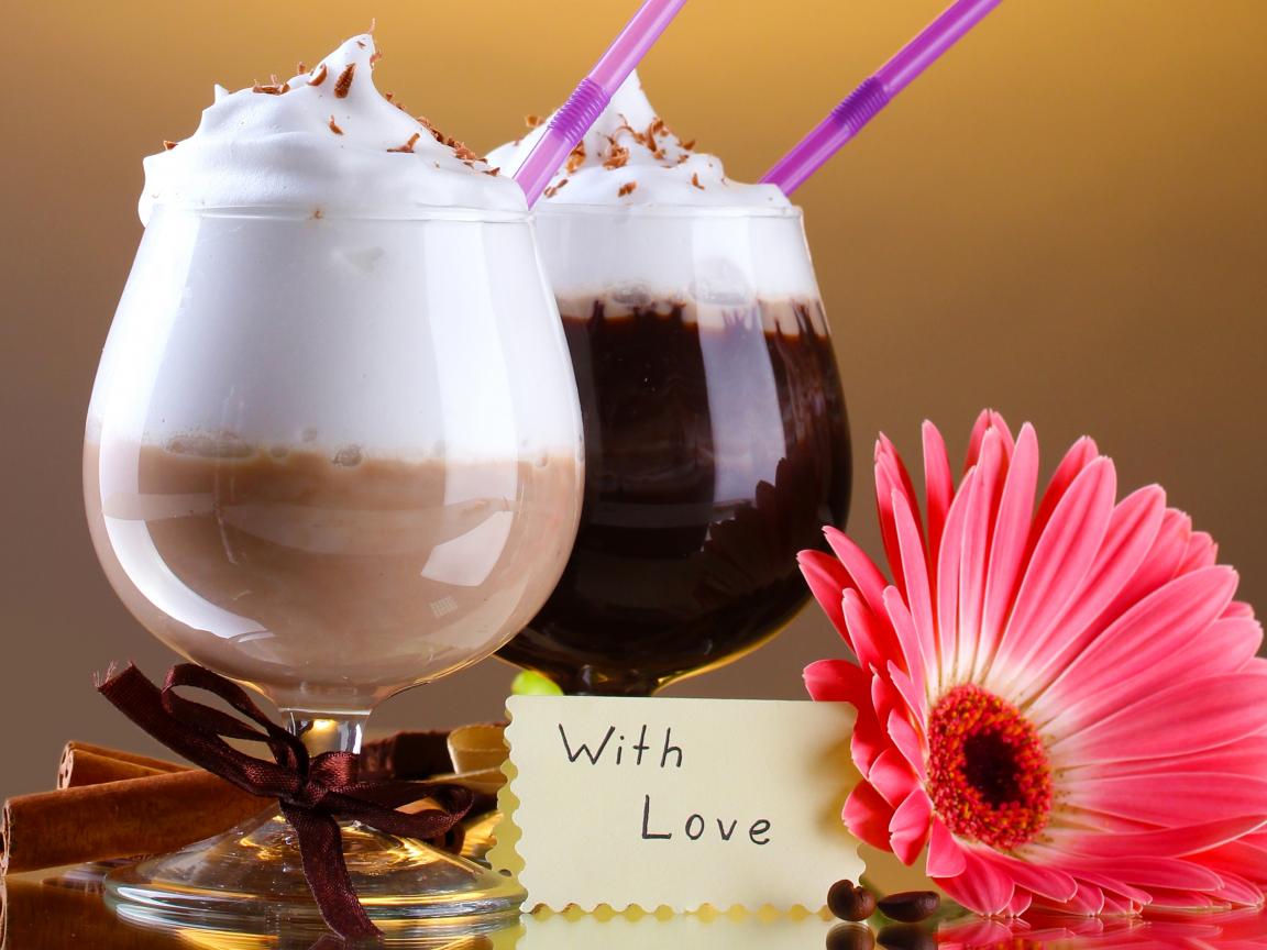 Wallpaper Two glasses with dessert, cinnamon and gerbera flower