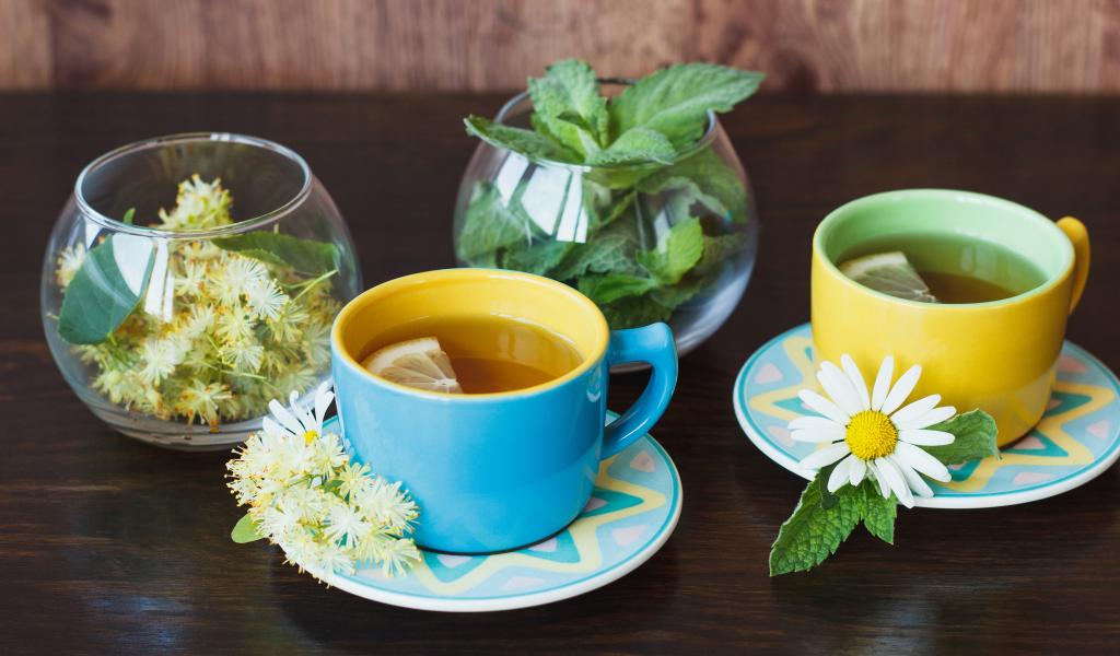 Wallpaper Delicious tea with lime and chamomile on the table