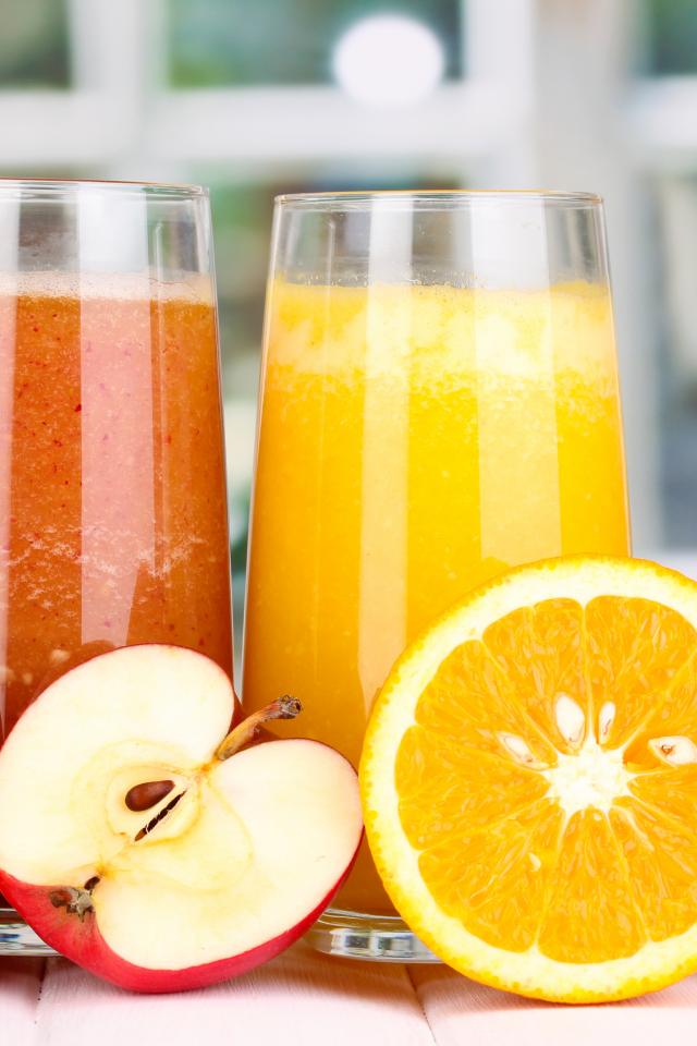 Wallpaper Two glasses of apple and orange juice and fresh fruit