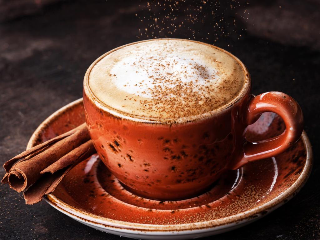 Wallpaper A cup of coffee with foam on a saucer with cinnamon