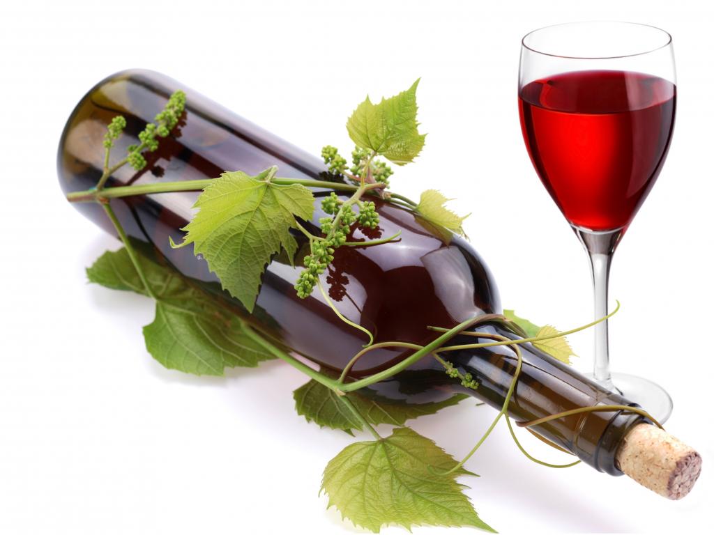Wallpaper Bottle of wine in a vine with a glass on a white background