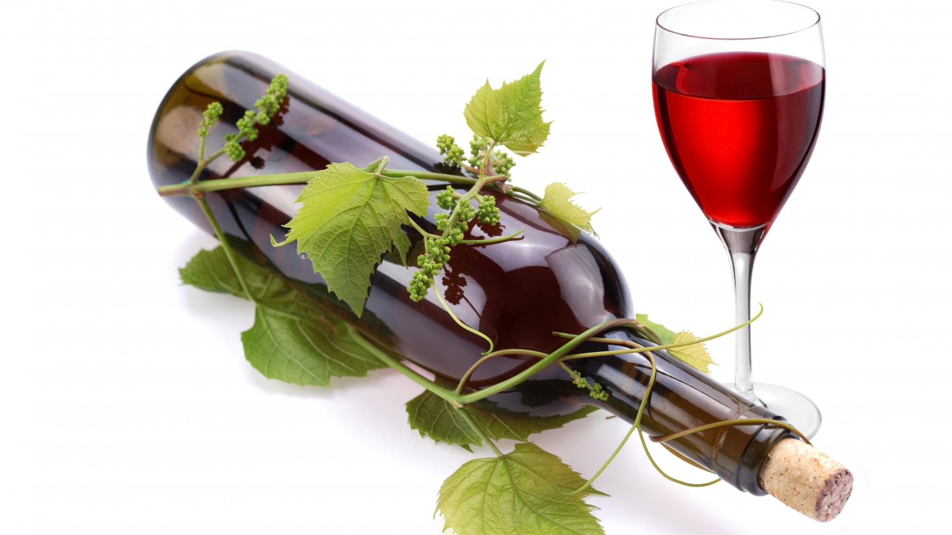 Wallpaper Bottle of wine in a vine with a glass on a white background