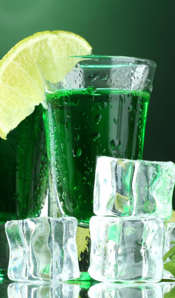 Wallpaper Fresh fish with shrimps and slices of lemon rests on ice cubes