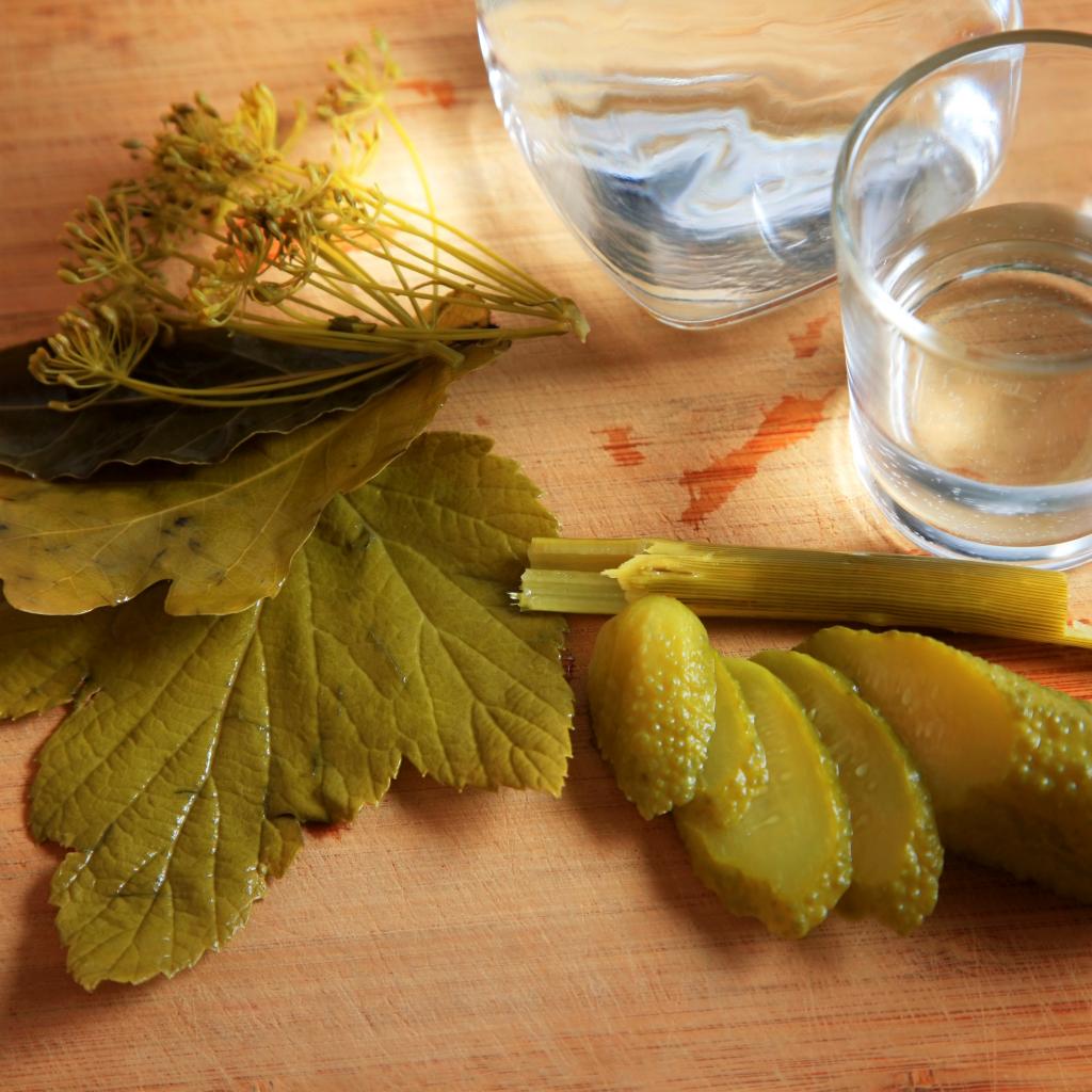 Wallpaper A glass of vodka on a table with pickled cucumber