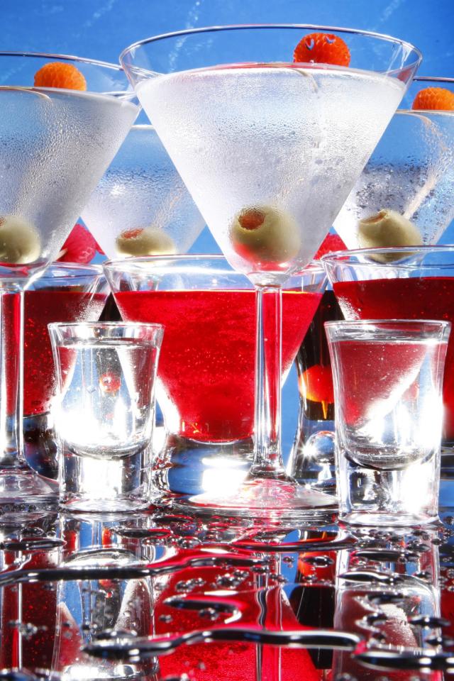 Wallpaper Cocktails with wine glasses on a wet table