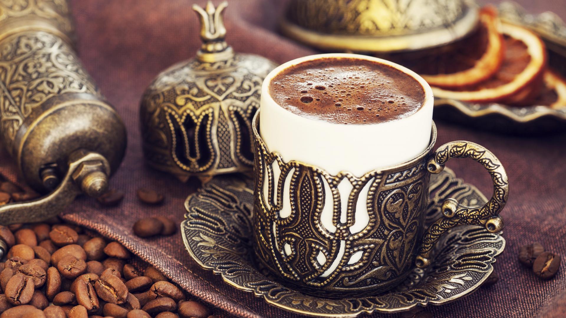 Wallpaper A beautiful designer cup of coffee on a table with grains