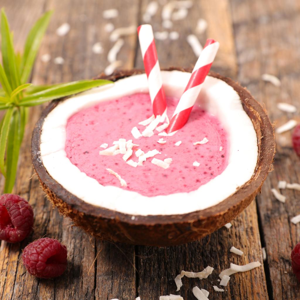 Wallpaper Delicious coconut cocktail in a glass with a straw