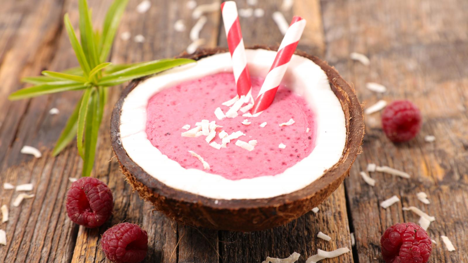 Wallpaper Delicious coconut cocktail in a glass with a straw