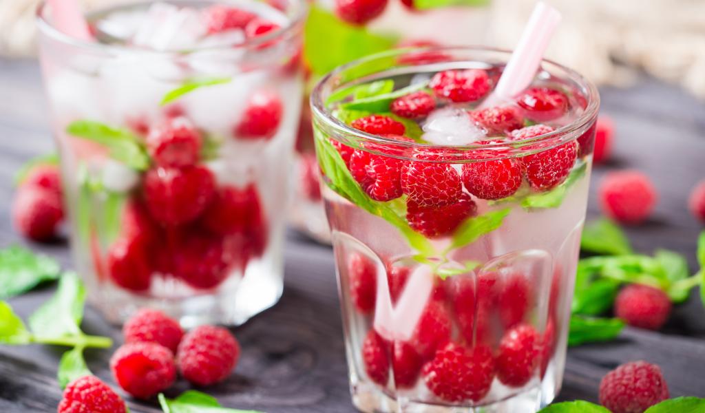 Wallpaper Drink in a glass with raspberries and ice cubes