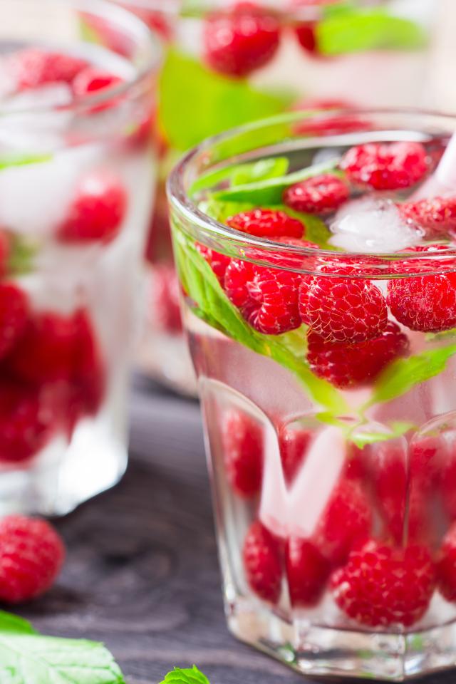 Wallpaper Drink in a glass with raspberries and ice cubes