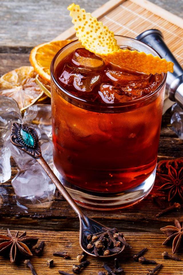 Wallpaper Tea with ice and pieces of dried orange and baden