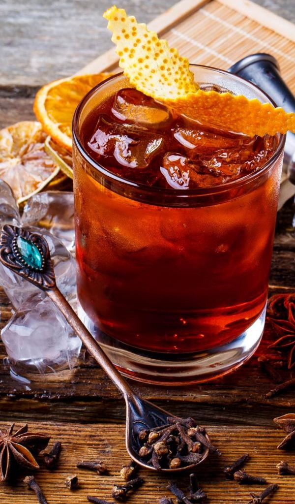 Wallpaper Tea with ice and pieces of dried orange and baden