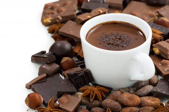 Wallpaper Hot chocolate in a white cup on a table with nuts