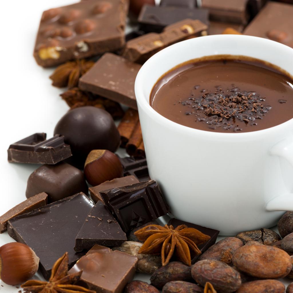 Wallpaper Hot chocolate in a white cup on a table with nuts