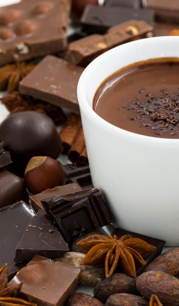 Wallpaper Hot chocolate in a white cup on a table with nuts