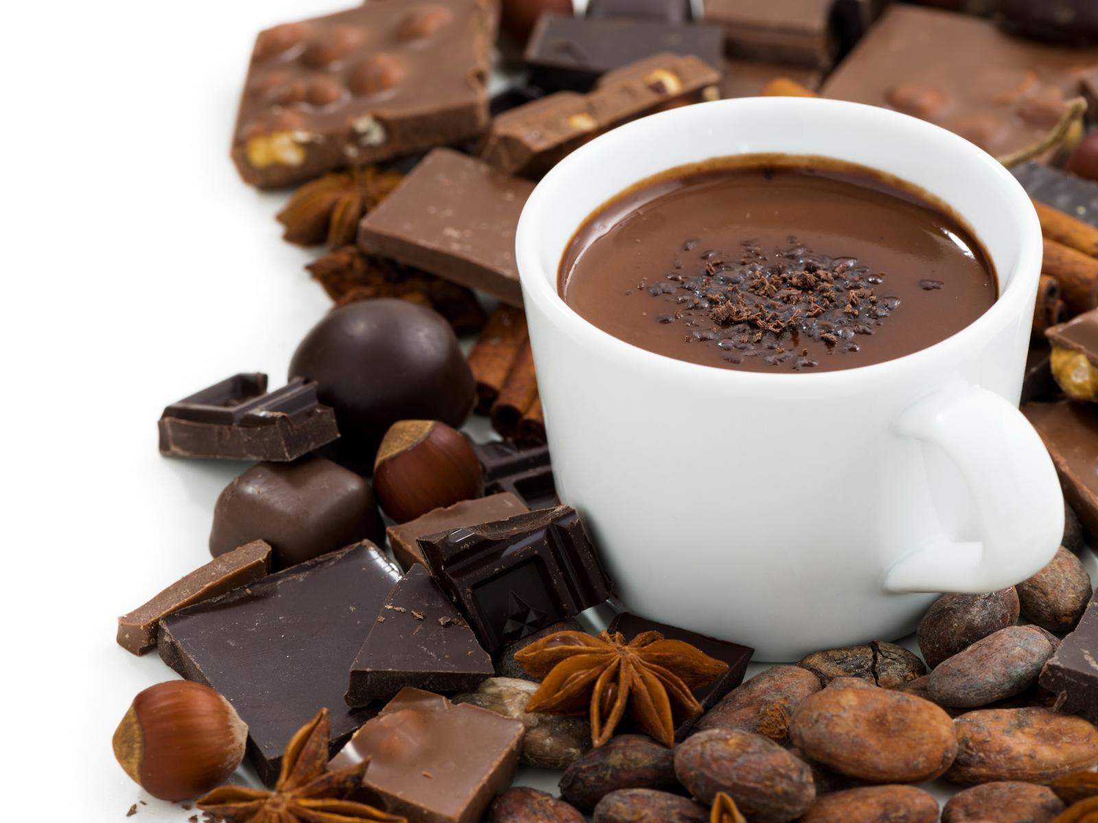 Wallpaper Hot chocolate in a white cup on a table with nuts