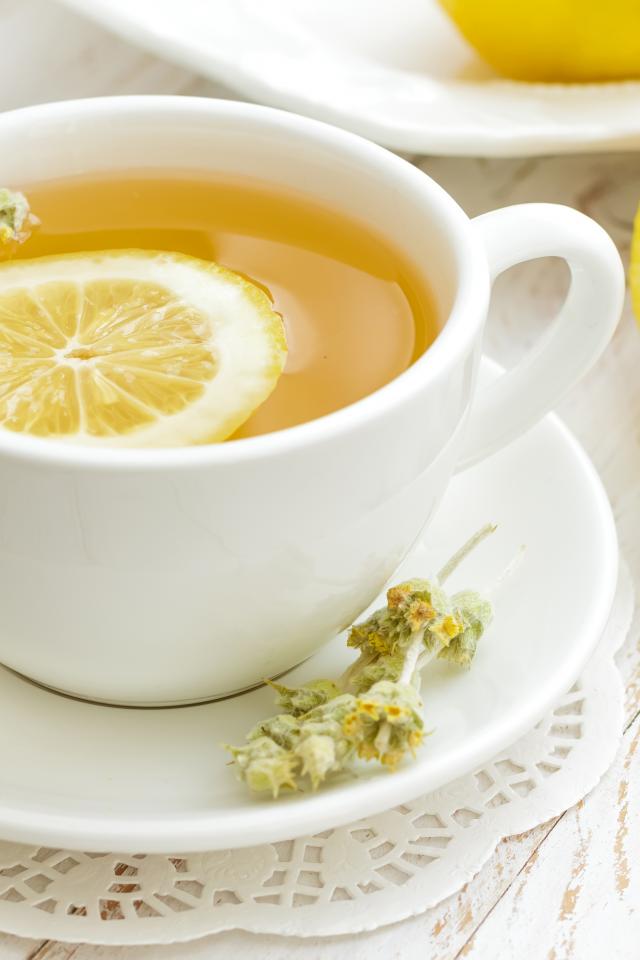 » Wallpaper White cup of flower tea with lemon