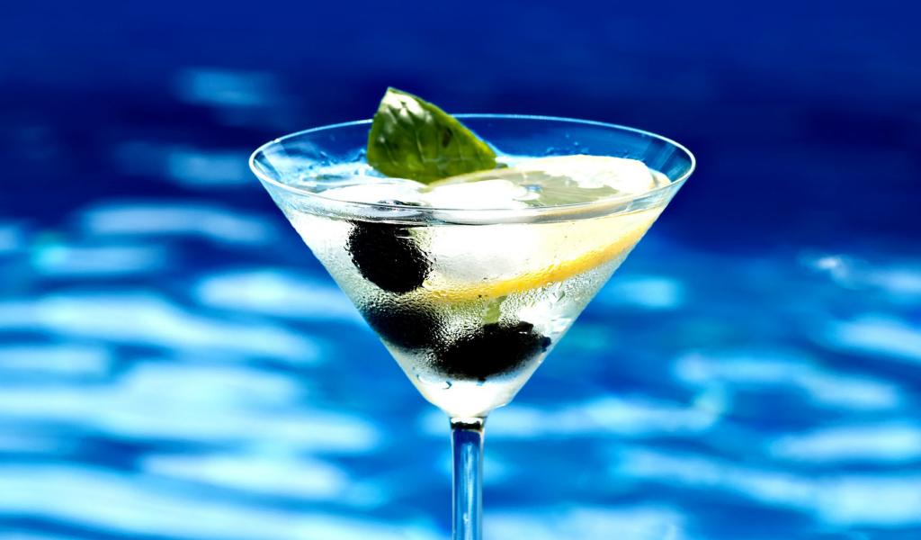Wallpaper Martini in a glass with lemon and olives