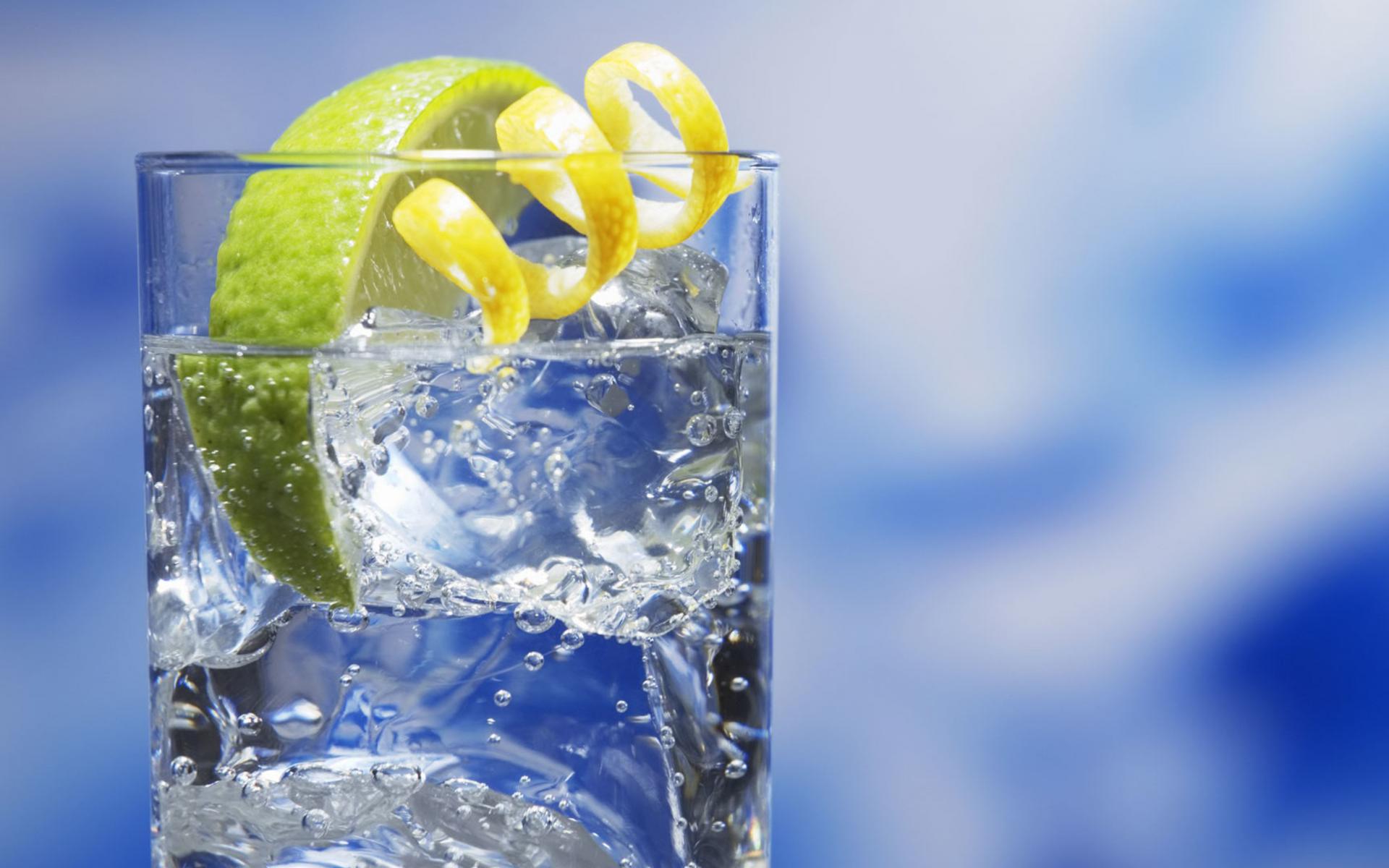 Wallpaper Lemonade in a glass with ice and lime