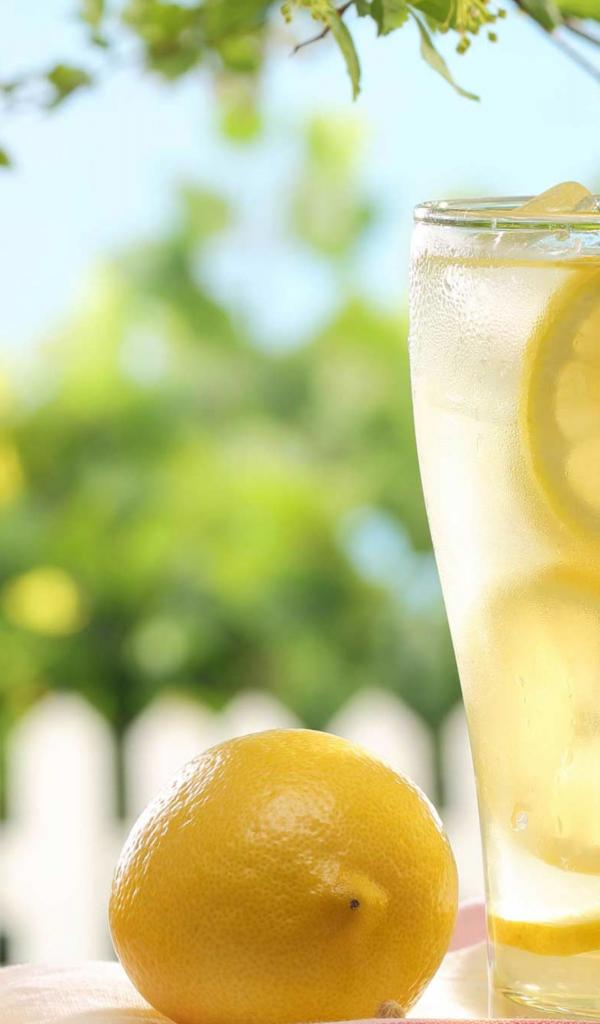 Wallpaper Cold lemonade in a glass with pieces of lemon