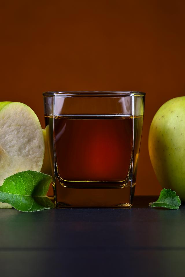 Wallpaper A glass of apple juice on the table with green apples