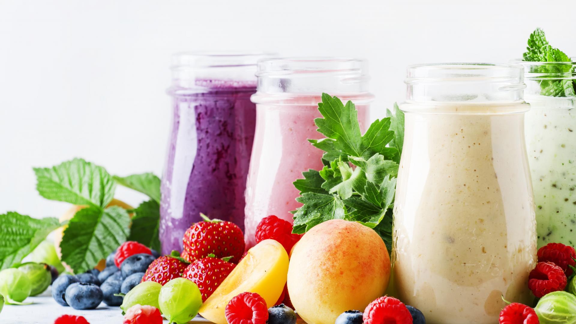 Wallpaper Berry smoothies in bottles on the table with berries
