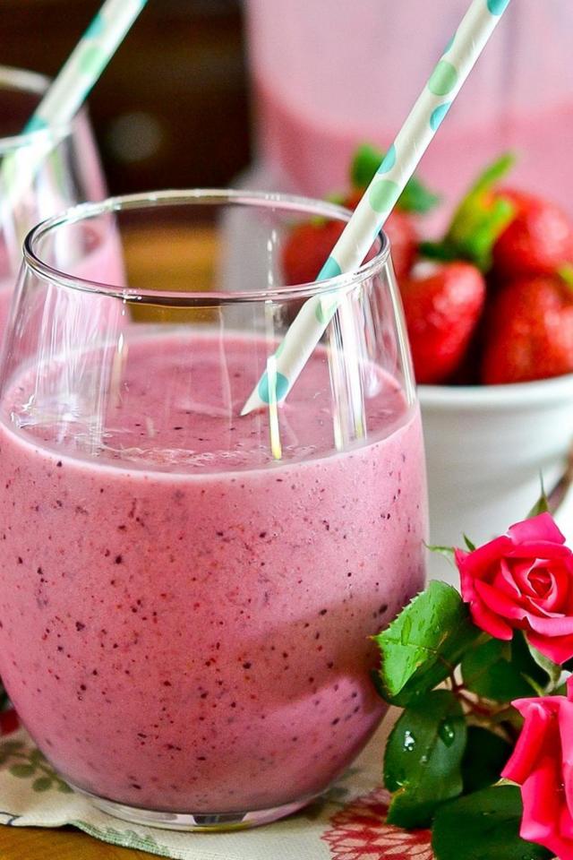 Wallpaper Strawberry smoothies in glasses with tubes on the table