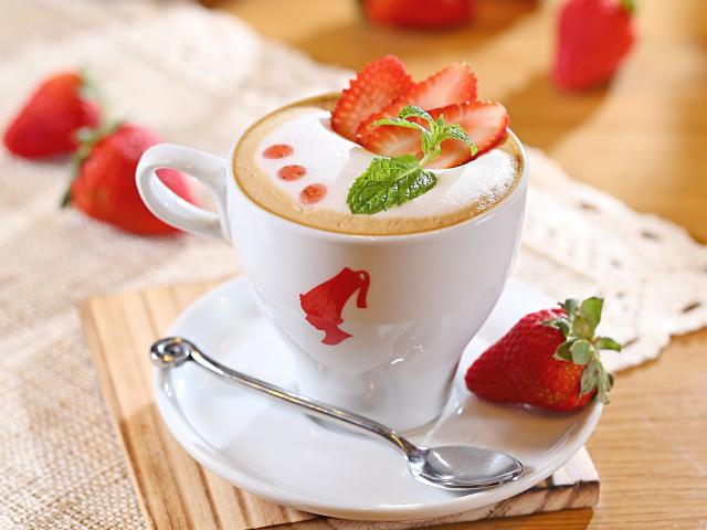 Wallpaper A cup of cappuccino with strawberries