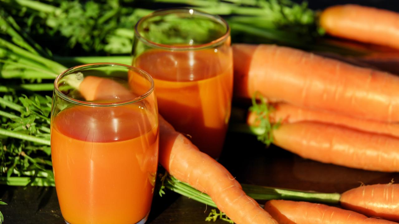 Wallpaper Two glasses of carrot juice on the table with fresh carrots