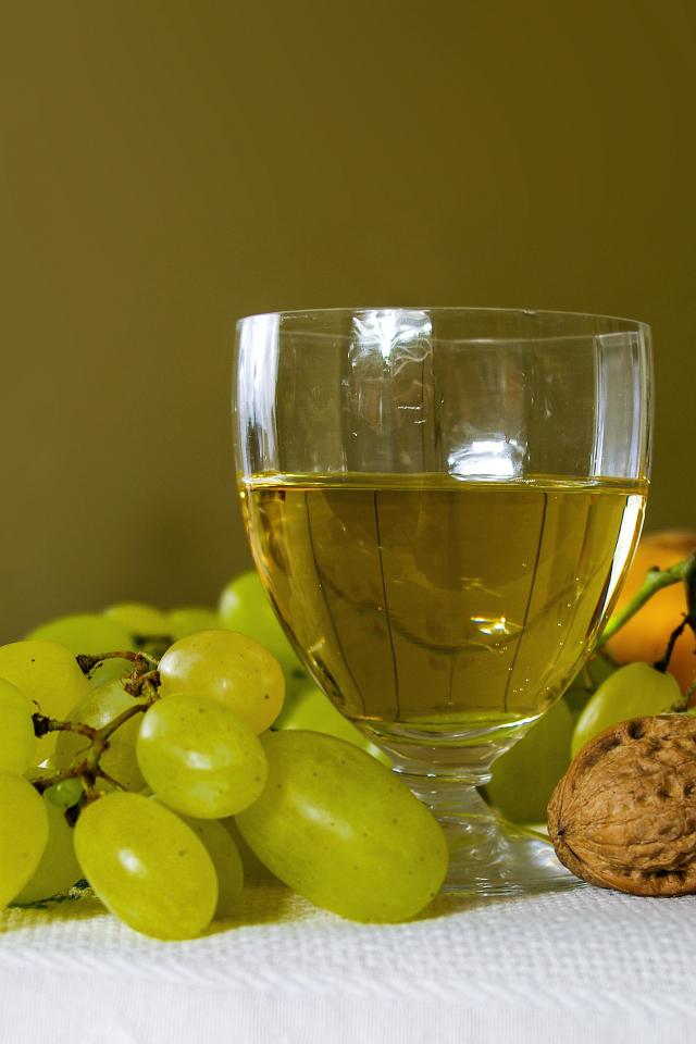 Wallpaper A glass of white wine on the table with grapes and nuts