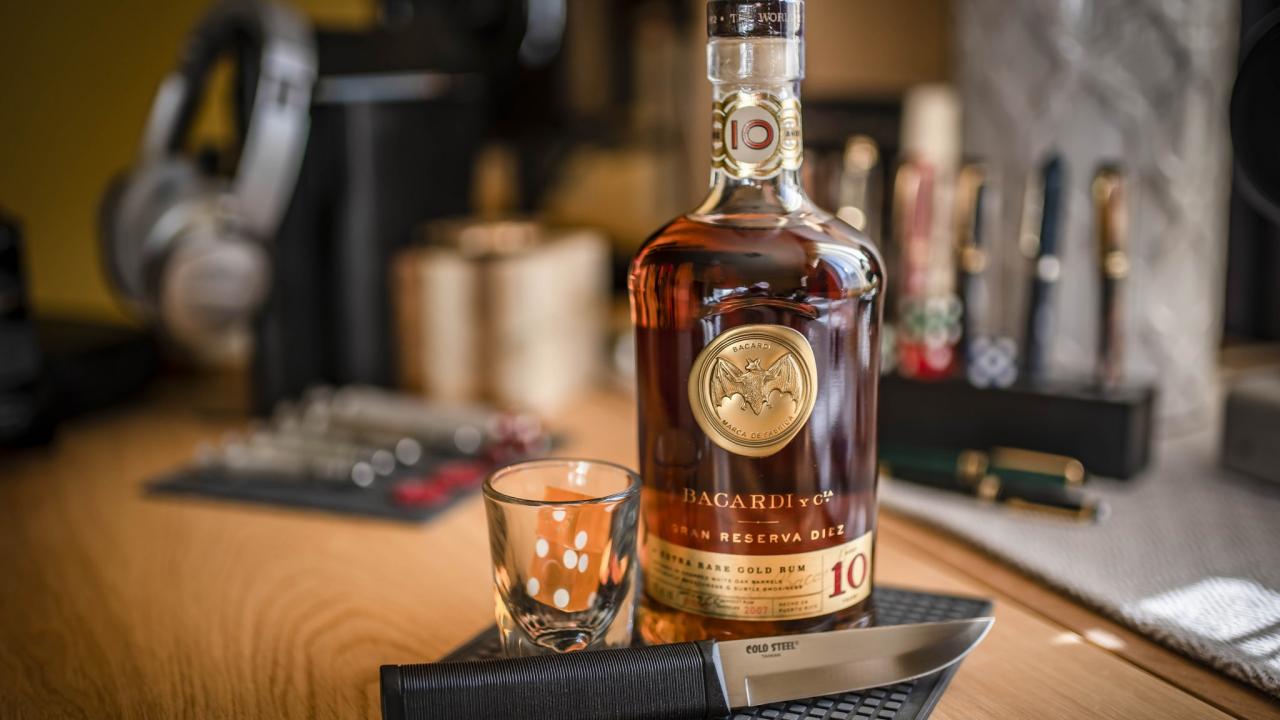 Wallpaper A bottle of whiskey on the table with a glass and a knife