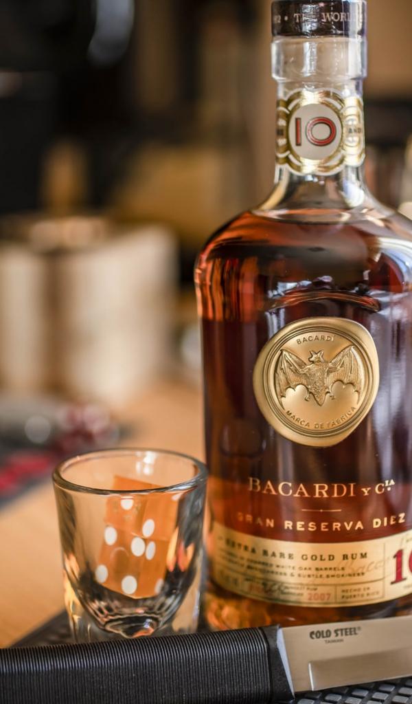 Wallpaper A bottle of whiskey on the table with a glass and a knife